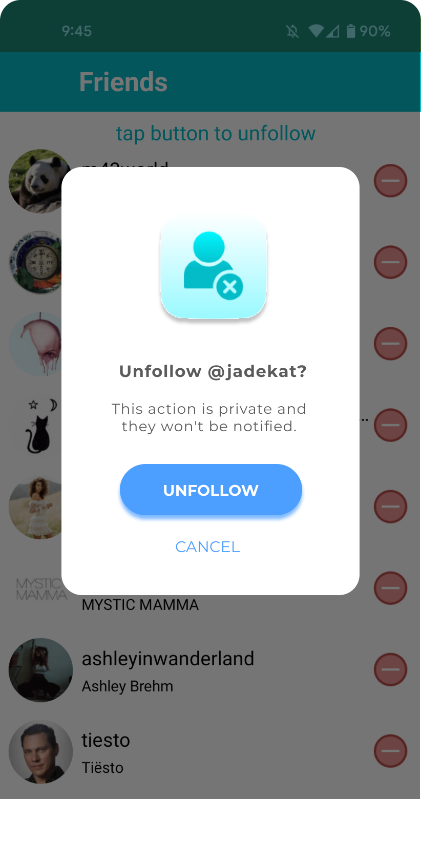I later decided the first pop-up is good for the first time a user unfollows someone. It’s not necessary for them to see this message every time they unfollow someone.